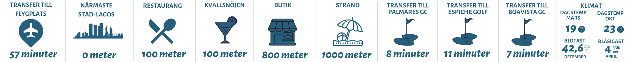 I vårt paket ingår en försäkrad hyrbil med extra förare och fria mil alternativt flygplatstransfer och golftransfer mot tillägg. Kustens tågservice är ett alternativ för utflykter, en kort promenad bort nås tågstationen som förbinder Lagos med flera orter ända bort till centralt belägna kusthuvudstaden Faro.