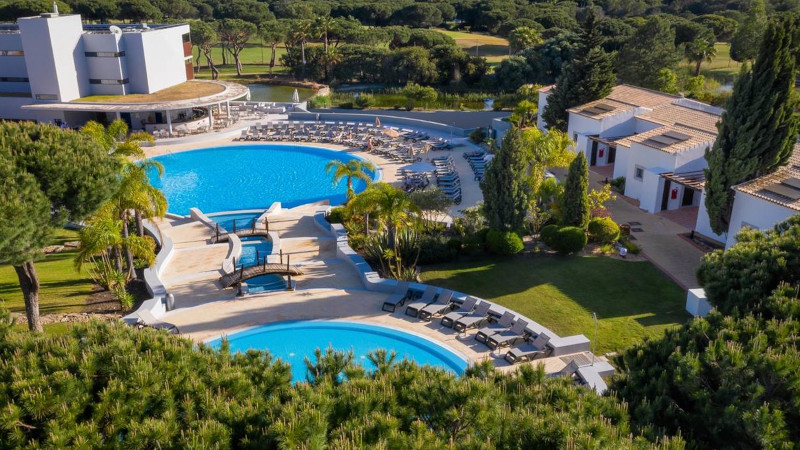 Detta golfhotell ligger i utankaten av Vilamoura och har utöver 27 golfhål utanför knuten även tennisbanor, utomhuspool, gym och uthyrning av cyklar. Boende sker Superior Garden-rum vilka ligger vid en härlig trädgård bakom hotellets huvudvyggnad och nära utomhuspoolen. Uppgraderaing till boende i Deluxe Golf-rum som ligger i huvudbyggnaden är möjlig, dessa rum ligger närmre driving rangen och frukostbuffén. Hotellet erbjuder en bufférestaurang och en a la carte-restaurang samt bar. För störe utbud av nöjen, shopping och restauranger rekomenderar vi en tiominuters taxiresa till marinan i Vilamoura.
