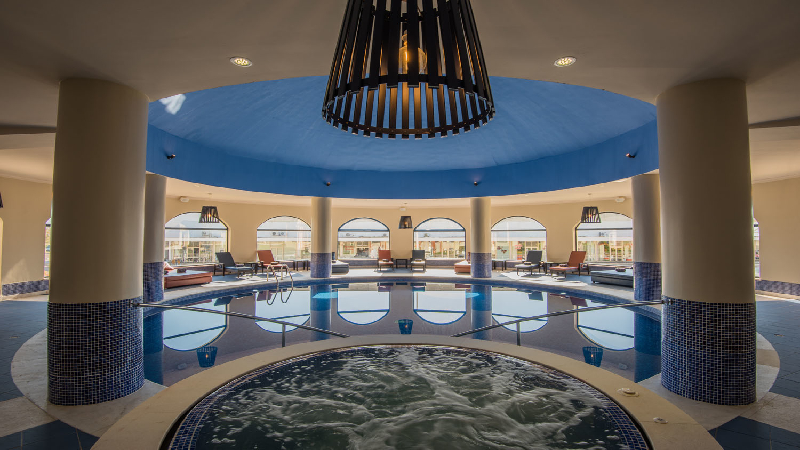 Hotellet har fint poolområde på sin innergård, restaurang, bar, SPA-avdelning med inomhuspool och aktivitetsrum. Rummen är inredda med bekväma sängar, stort badrum, tv och balkong. Läget är perfekt för den som vill kombinera avslappnat stadsliv med golf på östra Algarve.