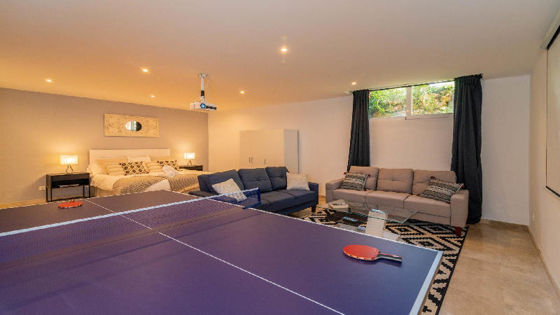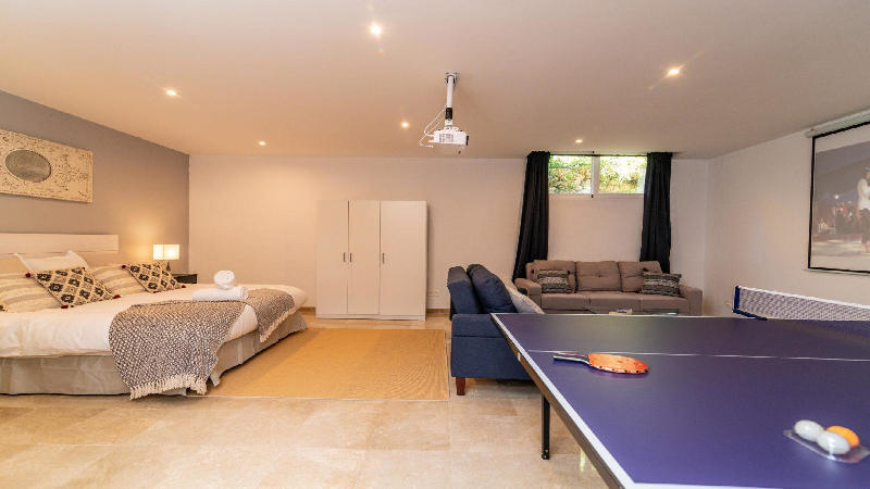 I husets källare finner ni ett sovrum, soffgrupp med projektor för gemensamma filmkvällar, bordtennisbord och en bastu. På markplan finns det moderna och fullt utrustade köket, ett ljust vardagsrum med stort matbord och utgång till er trädgård. På första våningen har ni tre välinredda och moderna sovrum med stora dubbelsängar och två badrum. Takvåningen erbjuder en inbjudande och mysig terrass med loungemöbler och bord, den perfekta platsen att njuta av Medelhavskvällen i goda vänners lag. Utomhus i er privata trädgård finns möbler där ni kan inta en frukost i det fria året runt och vid kvarterets gemensamma pool finns solstolar att koppla av i och möjligheten till ett svalkande dopp.