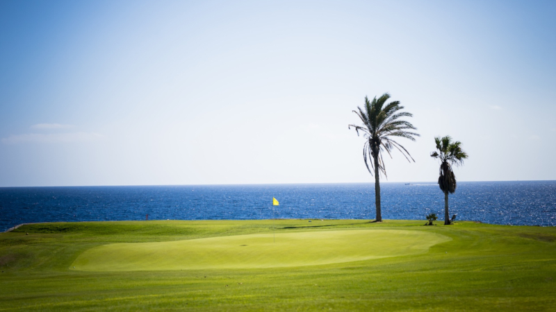 Amarilla Golf & Country Club är en naturskönt belägen 18-hålsbana på södra Teneriffa, granne med Golf del Sur och med Atlanten ständigt närvarande. Banan slingrar sig genom ett öppet landskap med palmer, kaktusar och lavasten, och flera hål spelas längs kusten med spektakulära vyer över havet. Den mest minnesvärda upplevelsen är det ikoniska par 3-hålet där utslaget slås över havet mot en green placerad på en halvö – ett av Teneriffas mest fotograferade golfhål. Banan är relativt flack och lätt att gå, med generösa fairways men greener som kräver ett välplacerat inspel. Amarilla GC erbjuder en trevlig mix av spelglädje och utmaning i en avslappnad miljö, där havsbris och vacker omgivning sätter tonen för en minnesvärd golfrunda som passar golfare på alla nivåer.
