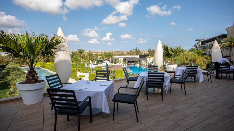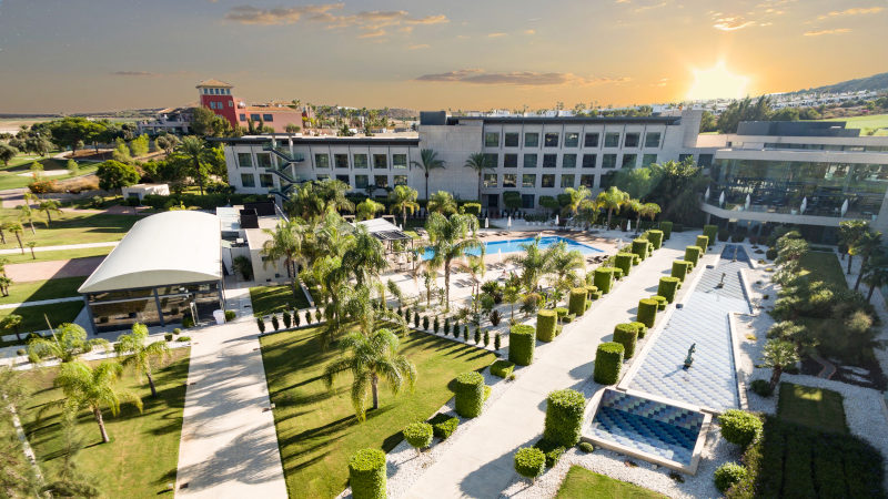 Inom hotellområdet finns padel- och tennisbanor, stort poolområde, flera restauranger och barer. Boende sker i stora elegant inredda rum med vackra vyer från er balkong i västläge.
