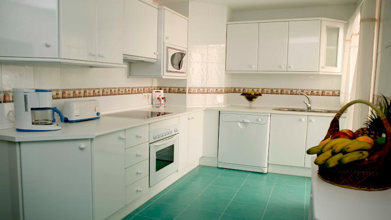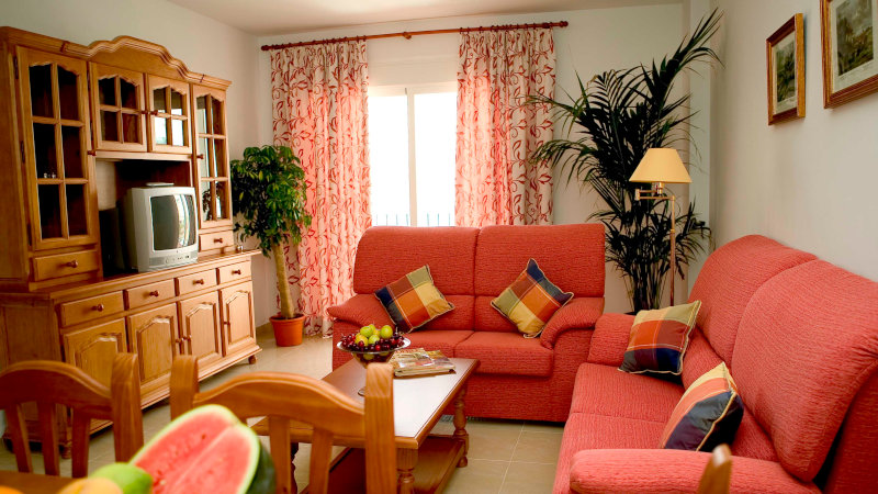Lägenheterna går i "spansk stil". De ser kanske inte mycket ut för världen men är rena, välutrustade och bekväma. Ni har två sovrum med balkong, två badrum, ett vardagsrum med matplats, soffa och tv, ett fullt utrustat kök och ett utrymme med tvättmaskin. Naturligtvis finns Wifi och på tv:n internationella kanaler. På plats finns Maria och Rafael som ser till att ta hand om er.